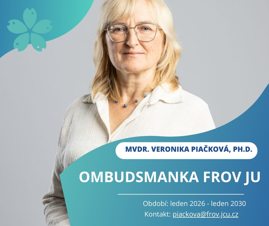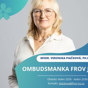 Na zasedání Akademického senátu FROV JU dne 17. 12. 2025 byla zvolena novou ombudsmankou fakulty MVDr. Veronika Piačková, Ph.D., které tímto srdečně gratulujeme.