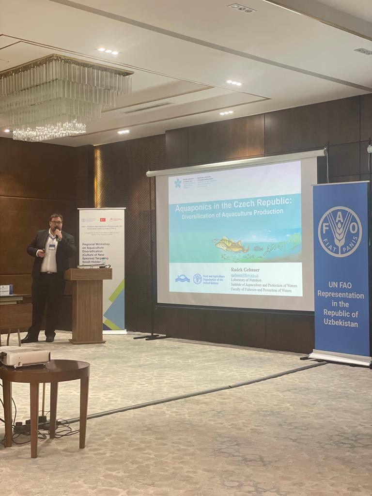 From 28.03.2023 to 31.03.2023, MSc. Tatyana Gebauer, Ph.D., and Ing. Radek Gebauer, Ph.D. participated in the Regional Workshop on Aquaculture Diversification (Culture of New Species) Targeting Small-Holder Farmers and Extension Agents, which was held in Tashkent, Uzbekistan. As invited speakers, they presented 3 presentations “Diversification of European Aquaculture: Percid case”, “Aquaponics in the Czech Republic: Research and knowledge transfer to farmers,” and “Traditional and modern approaches in the Czech Aquaculture.” The main goal of this Workshop was to expand knowledge, skills, and cooperation among participating countries.